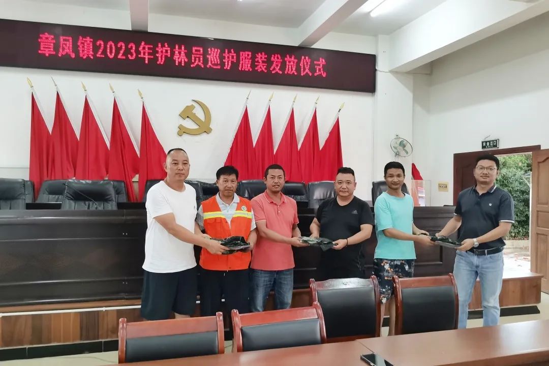 会议最后,镇领导为天然林及生态护林员发放了巡护服装,增强了护林员的责任感和使命感。