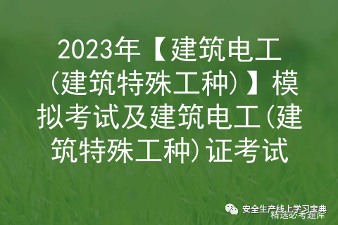 建筑电工(建筑特殊工种)模拟考试考前必练!安全生产模拟考试一点通每个月更新建筑电工(建筑特殊工种)证考试题目及答案!多做几遍,其实通过建筑电工(建筑特殊工种)模拟考试题很简单。