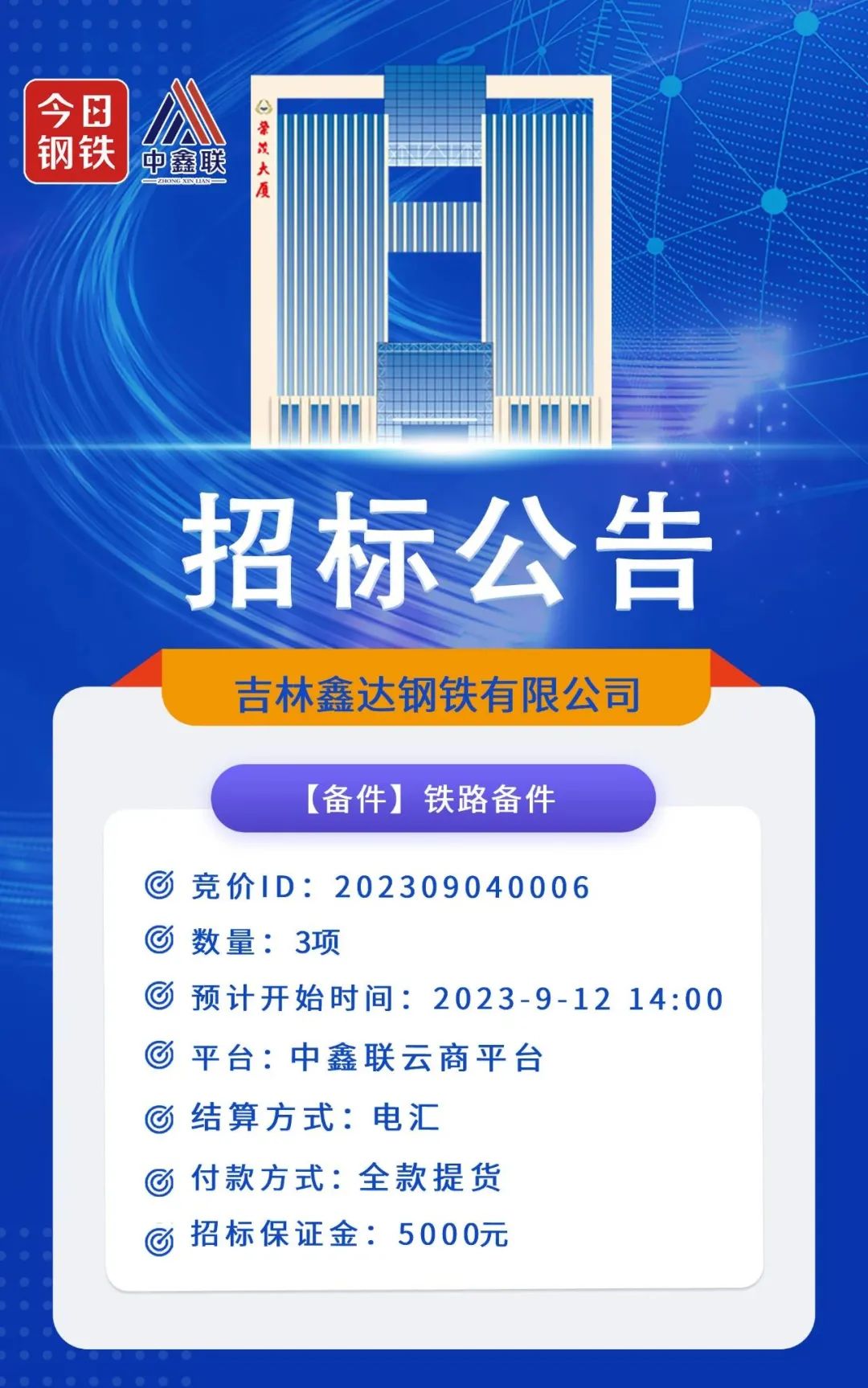 【招标公告】吉林鑫达钢铁有限公司铁路备件招标