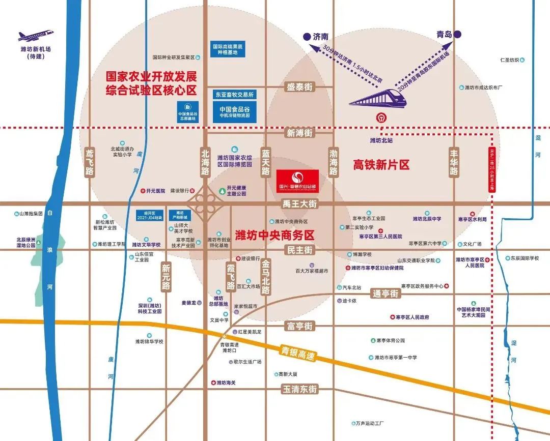 项目位于北海路以东,禹王大街以北,属潍坊国家农综区核心区,另辐射高铁新片区、潍坊中央商务区,区域发展潜力无限。