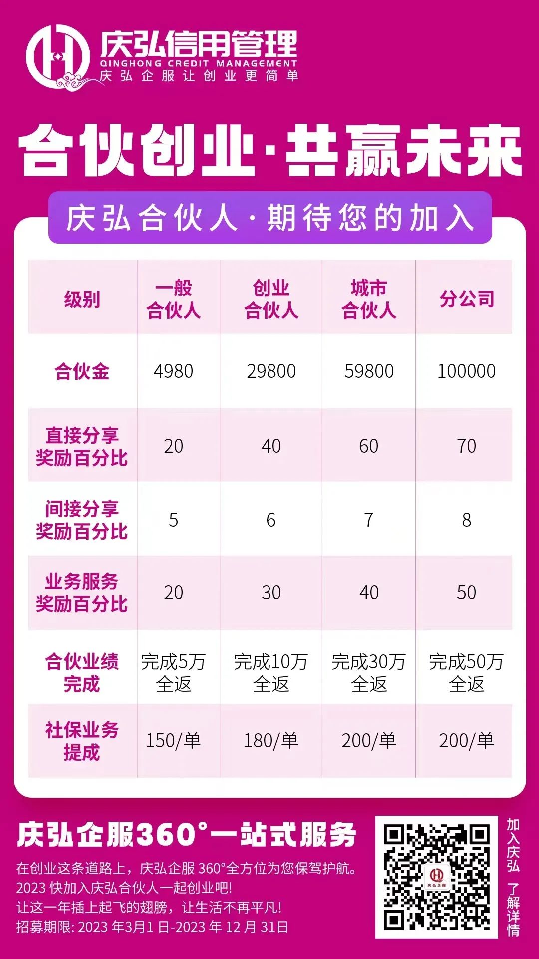 庆弘合伙人共分为四个级别:一般合伙人、创业合伙人、城市合伙人、分公司。四大合伙人级别分别可享受以下权益: