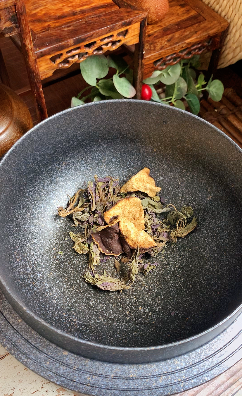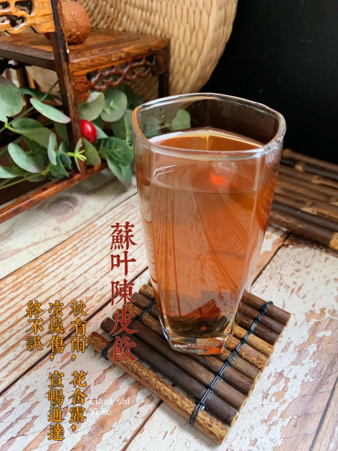 当我们在面对初期较轻的凉燥时,就可以试试这款简易的辛温发散之方——苏叶陈皮饮。