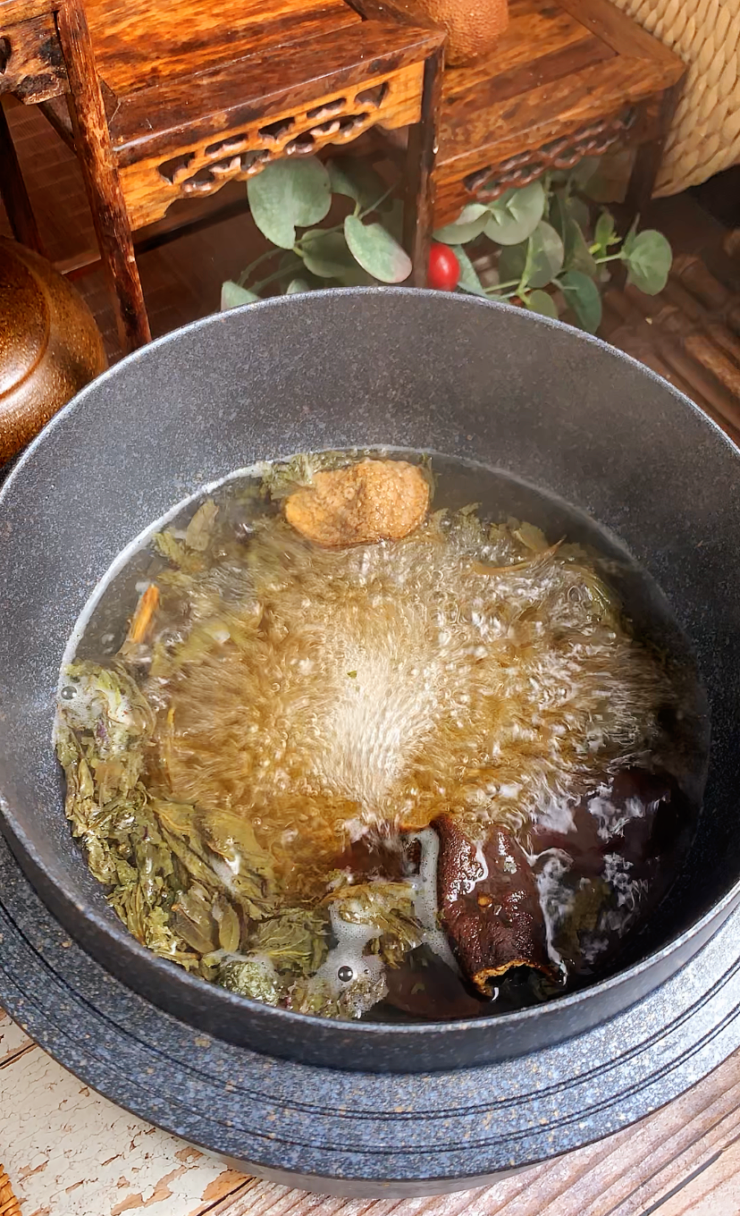 1、将苏叶与陈皮加入锅中,入2-3碗水量。