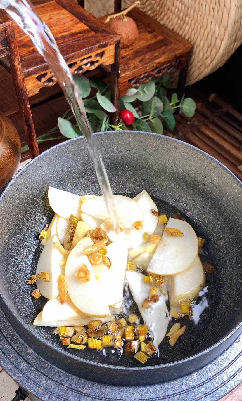 当我们有这样轻症时可以寻医问药用一些小方子就能解决不适,如果没有明显外感,津液匮乏,或者阴虚的朋友,感受到温燥,就可以用今日这款白梨熬水饮,简单清凉滋润的食疗之法,来养阴生津,润肺清凉。