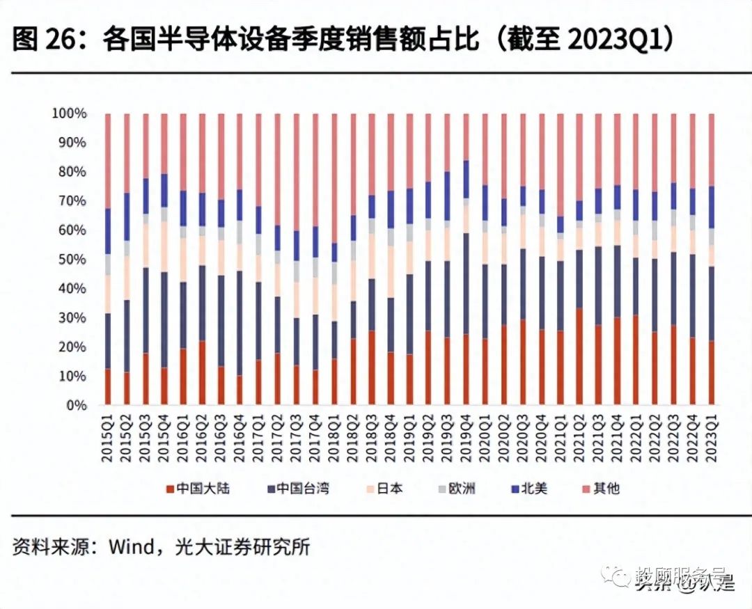 近年来在数码产业加速发展的背景下,全球半导体设备销量增速较快,中国大陆 市场占比处于第一梯队。根据 Wind 所统计的日本半导体制造协会数据,2023 年第一季度全球半导体设备销量达 268.1 亿美元,同比增长 8.59%,其中中国 大陆半导体设备销售额达 58.6 亿美元,占比达 22%。我国半导体设备行业整体 水平不断提高,中国大陆已成为全球主要市场之一,也为半导体设备电源加速国 产替代奠定了基础。