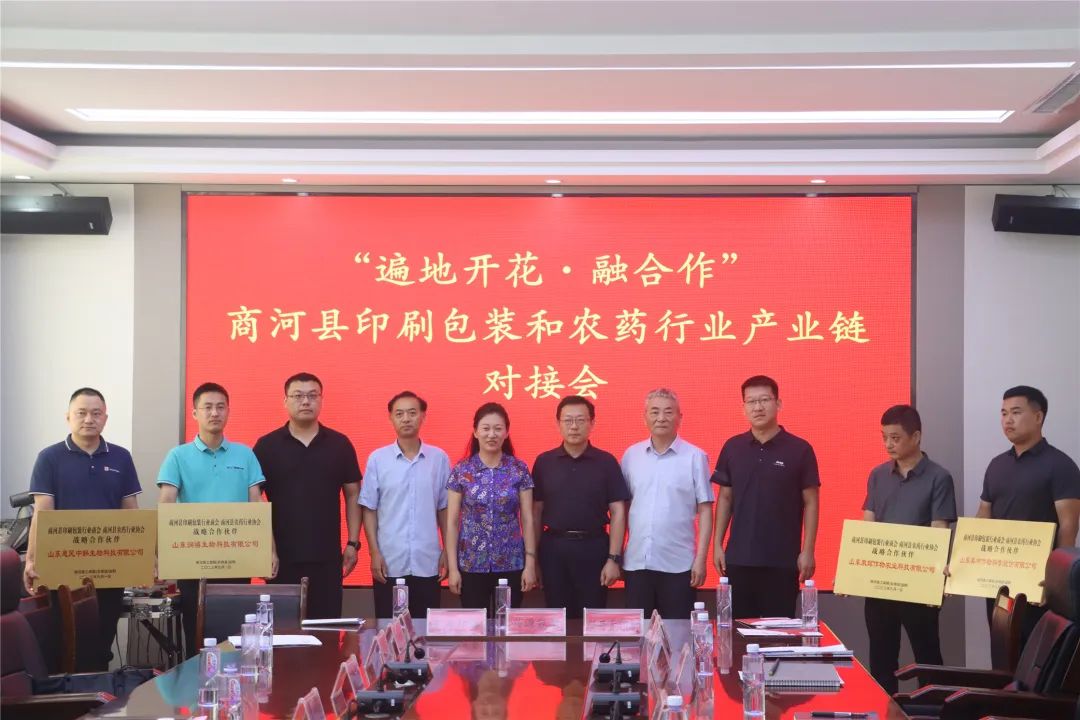 商河县农药行业协会秘书长张鹏指出,目前全县拥有30余家农药相关企业,产业发展前景巨大,希望能够进一步与印刷包装行业商会展开合作,真正做到“商河造、商河用”。