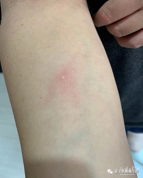 由于药瓶密封不严,“大象药水”已经漏得到处都是,连用于防护的一次性手套上都沾满了药水。实验还没开始,测试人员手臂上就已经喷溅上了泄漏的药水,随着阵阵刺痛,手臂被喷溅上药水的部位渐渐被腐蚀变成白色。在用大量清水冲洗约十几分钟后,手臂上的“白点”转成红色并凸出肿起,直至数小时后才慢慢恢复正常。