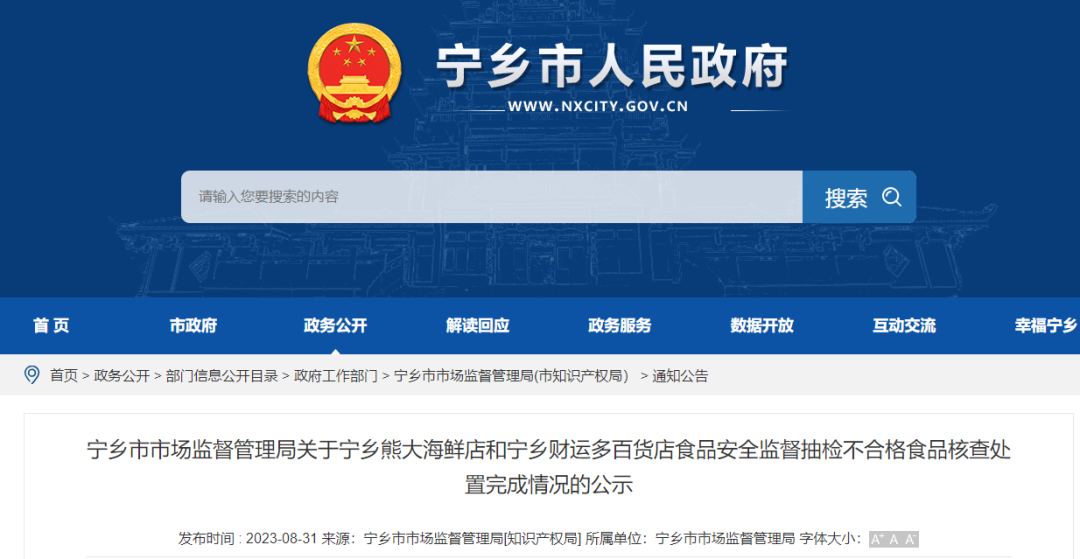 我局对宁乡熊大海鲜店和宁乡财运多百货店开展执法检查。经现场检查,均未发现不合格批次产品。