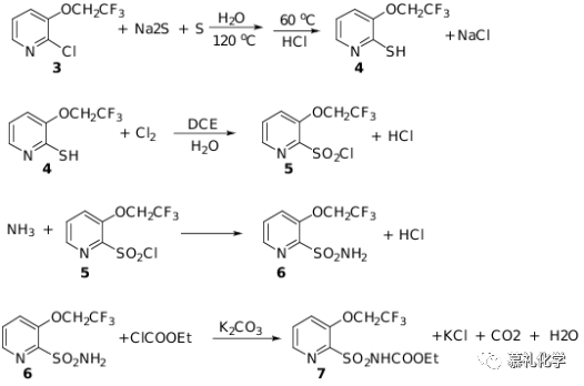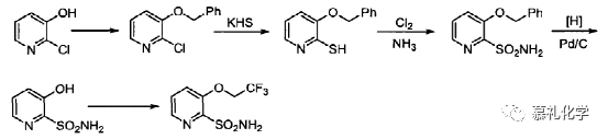 上述两条路线主要的问题就是三氟乙氧基如何与吡啶环对接的问题,只要解决这个问题,该工艺路线都是比较常规的合成工艺了。