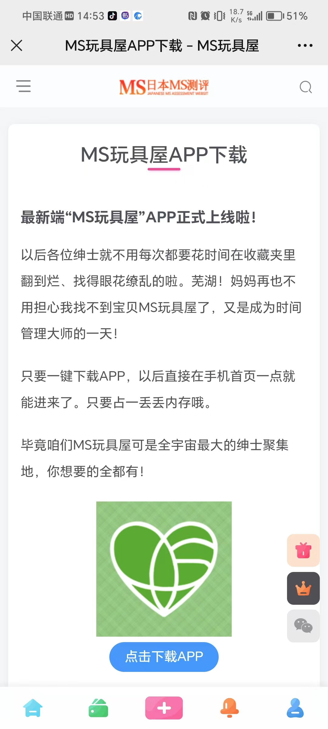 好消息!!!MS玩具屋专属app已强势登录,高段位玩家不容错过,几百本剑谱等你翻阅学习,更有两性冷知识等你深入了解,让你知己知彼,百战不殆,再也不愁追不到女生了,速速上车吧。