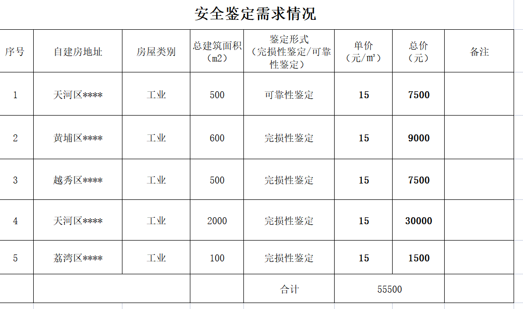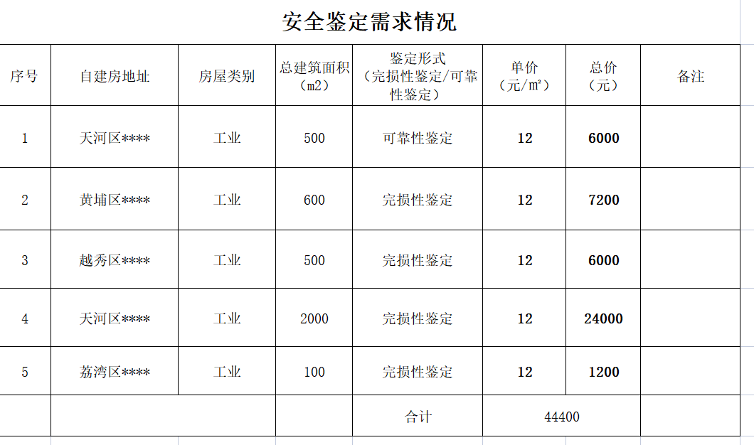 下面是一个房屋鉴定服务项目,需求清单如下: