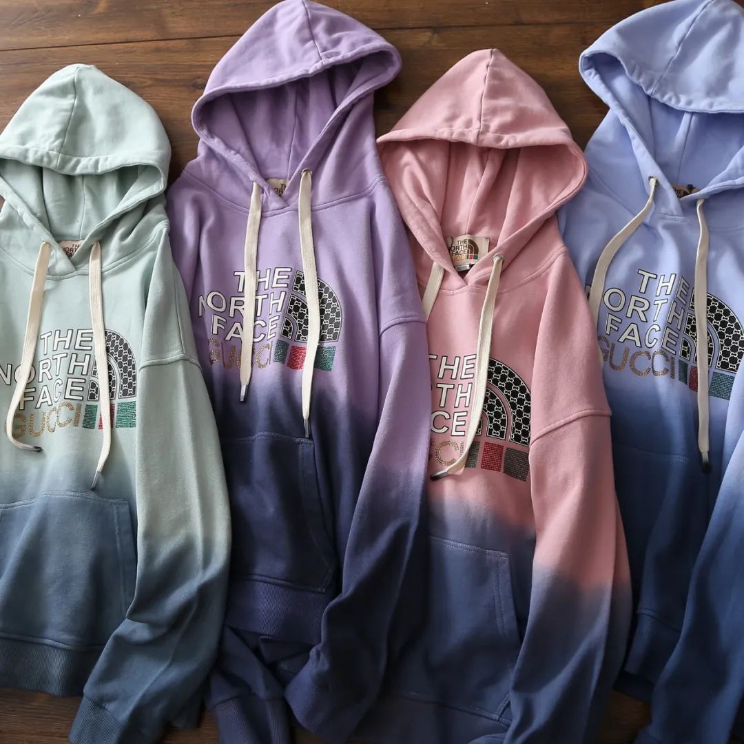 高工艺吊染!重磅女装!初秋限定潮牌女士渐变印花烫钻卫衣高端连帽套头衫上衣!