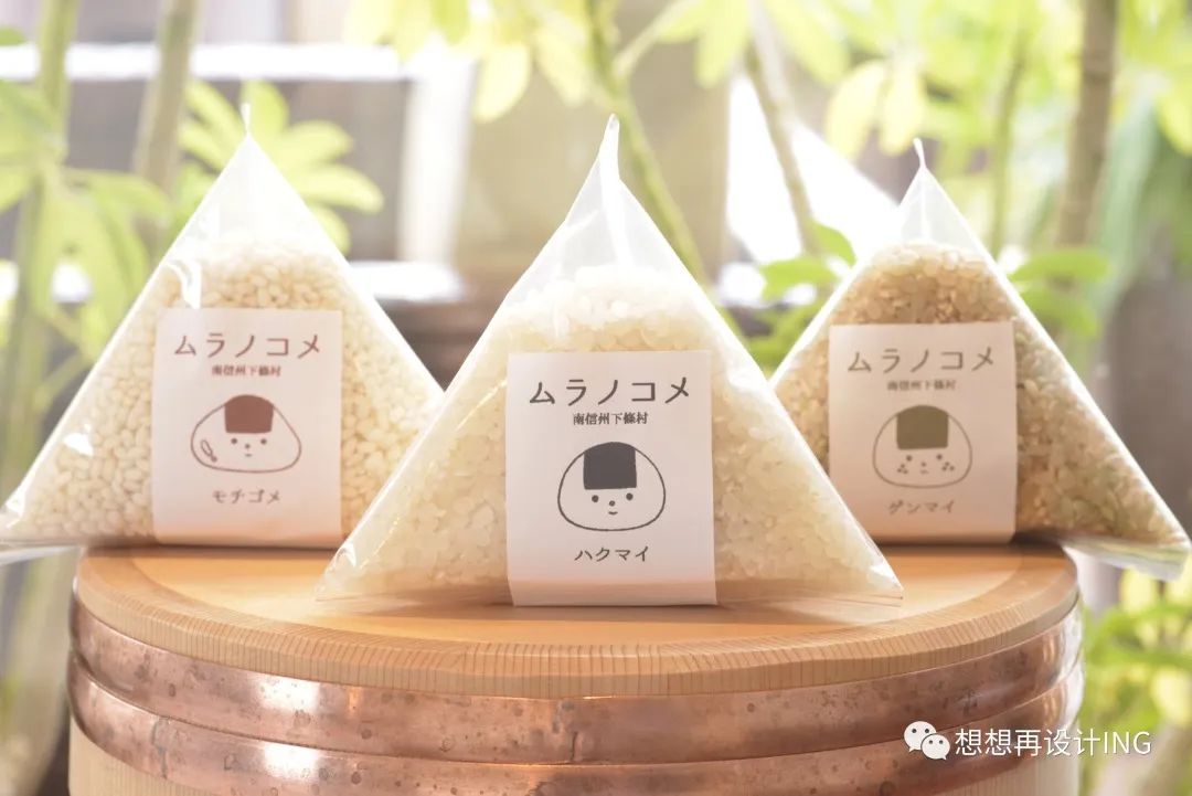 包装设计以饭团的三角形为基础。共有三种类型:白米(白米)、玄米(糙米)和糯米(糯米)。包装是透明的,所以你可以看到每一粒米的颜色。一个可爱的饭团插图也是一个兴趣点。设计感人,让人想吃饭团,是一份完美的礼物。