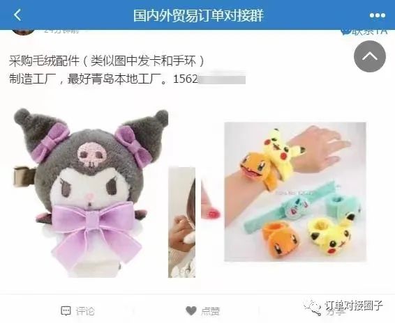 订单采购:采购毛绒配件(类似图中发卡和手环)