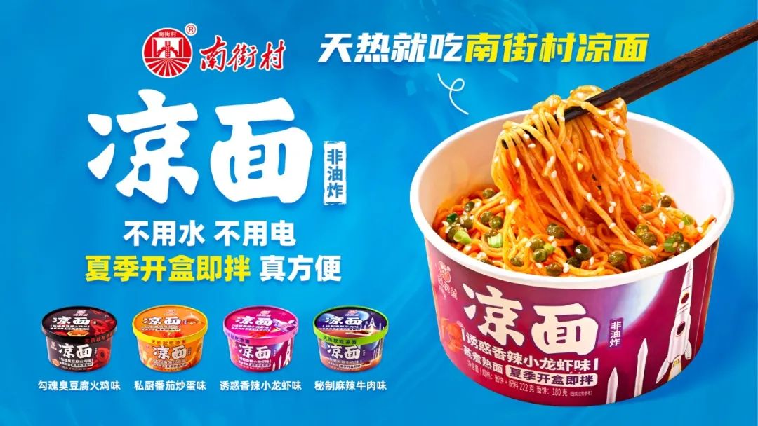 天热就吃[南街村凉面 ],不用煮、不用泡,只需打开盒子,把面和调料混合拌一拌即可,大快朵颐。常温保存6个月。由国家级调味师评委精心调制,爽滑劲道,非油炸蒸煮熟面,乳酸保鲜,航天风高颜值设计,三同企业,出口30多国家。诚招校园、连锁超市、便利店、零食系统经销商。南街村大品牌,售后有保障。