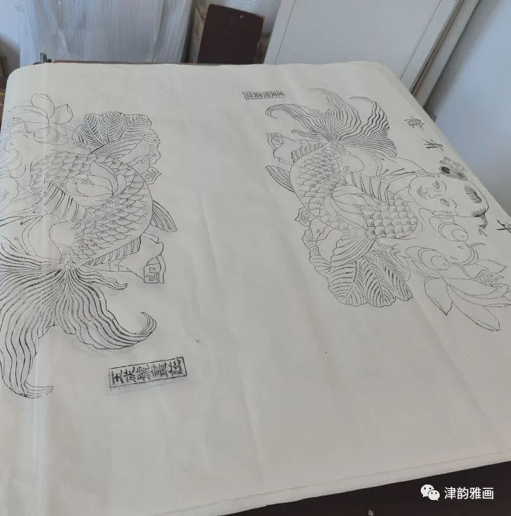 杨柳青年画是中国传统绘画艺术中的一支重要流派,以其细腻的线条和鲜艳的色彩而闻名。而其制作工艺于其他种类的年画相比也有着许多不同。一幅完美杨柳⻘年画的诞生共需经历五个步骤:“勾”、“刻”、“印”、“绘”、“裱”,即为“勾描”、“刻板”、“套印 ”、“彩绘”和“装裱 ”。五种工艺看起来简单,实际里面的学问却不少。一名匠人,如果能在一生的创作过程中精通两到三种工序,便可以称得上是十分了不起了。所以,一幅画作 往往需要多位匠人共同创作。这样一来,团队合作的重要性便可⻅一斑。