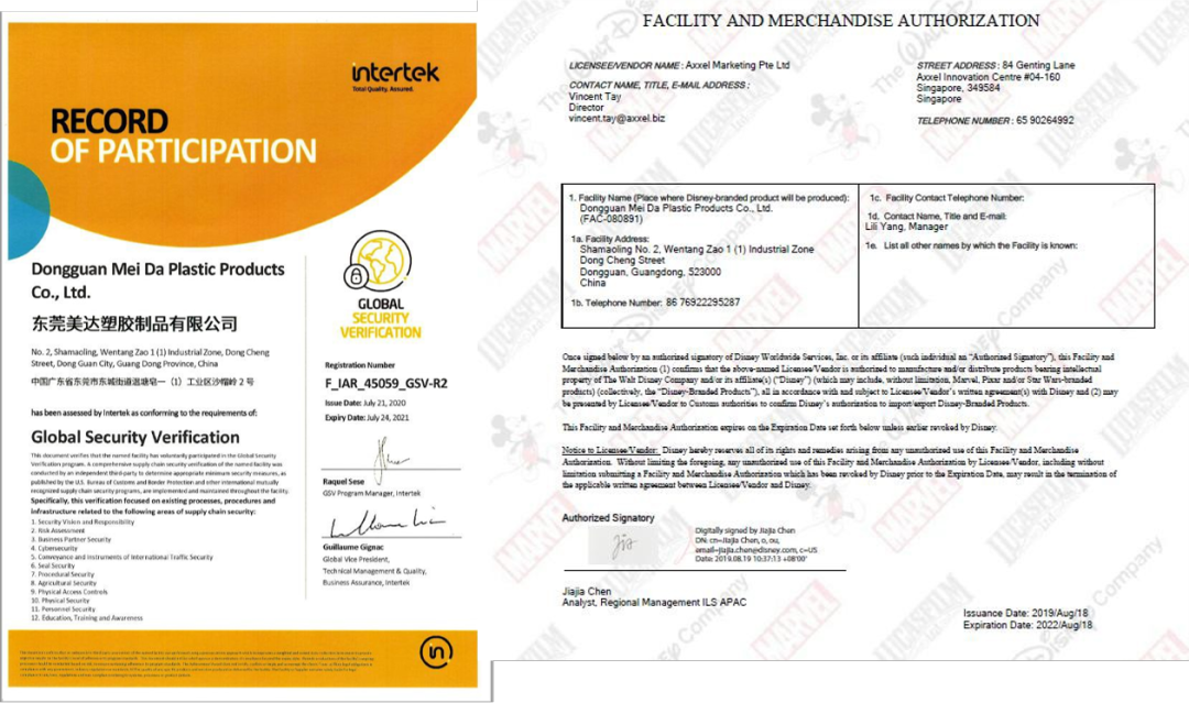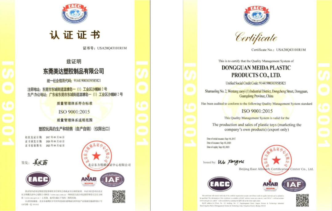 组装生产线13条,包装生产线6条。主要生产设备包括:自动螺丝机20台,单色移印机9台,吸塑机9台,超声机18台,自动封箱机6台,全自动热收缩机3台,自动点胶机5台等。日均最大产量达20万个,年产能达1000万个。实验室配备了各种相关的测试设备,主要包括:推/拉/扭力计,小零件检测仪,尖点测试仪,高温炉,冷冻箱,恒温恒湿箱,运输振动台,ASTM/EN-71跌落台,酸度计,色差计,金属探测仪,盐雾测试箱等。公司自创建以来,秉承ISO9001的管理理念,坚持以 “质量至上,诚信高效”的经营方针,以达到客户要求为己任。建立和维持了IETP、客户CoC、BSCI、ISO9001、 GSV等社会责任、品质和安全等管理体系。工厂在日常运营中,能切实履行当地政府的相关法律法规及客户标准。以人为本,保障员工有一个健康/安全的工作环境。公司集产品开发设计、 模具制造、注塑 、搪胶 、喷油、移印、手油色 、组装、包装等于一体,为客户提供全方位 、一站式的制造及加工服务,产品远销欧美、亚太等世界各地!