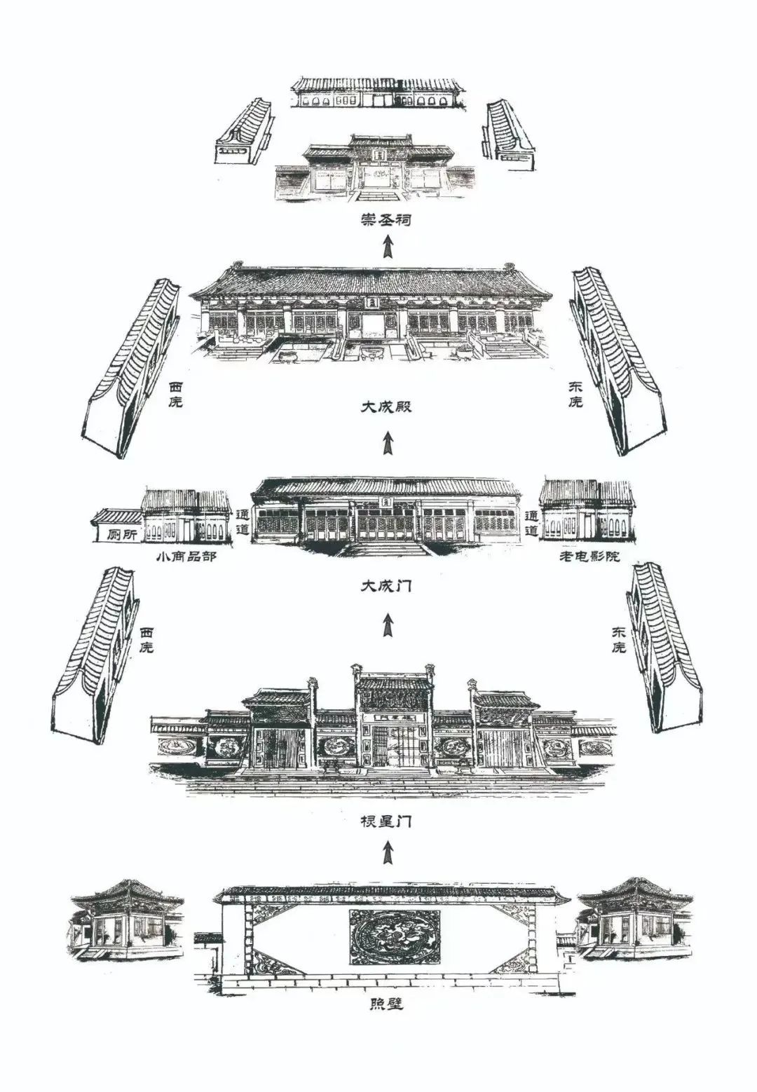 进入文庙,初入眼帘的是原文庙大门棂星门。棂星传说为天上的文曲星,在文庙之中指孔子为星宿降世,福降人间。