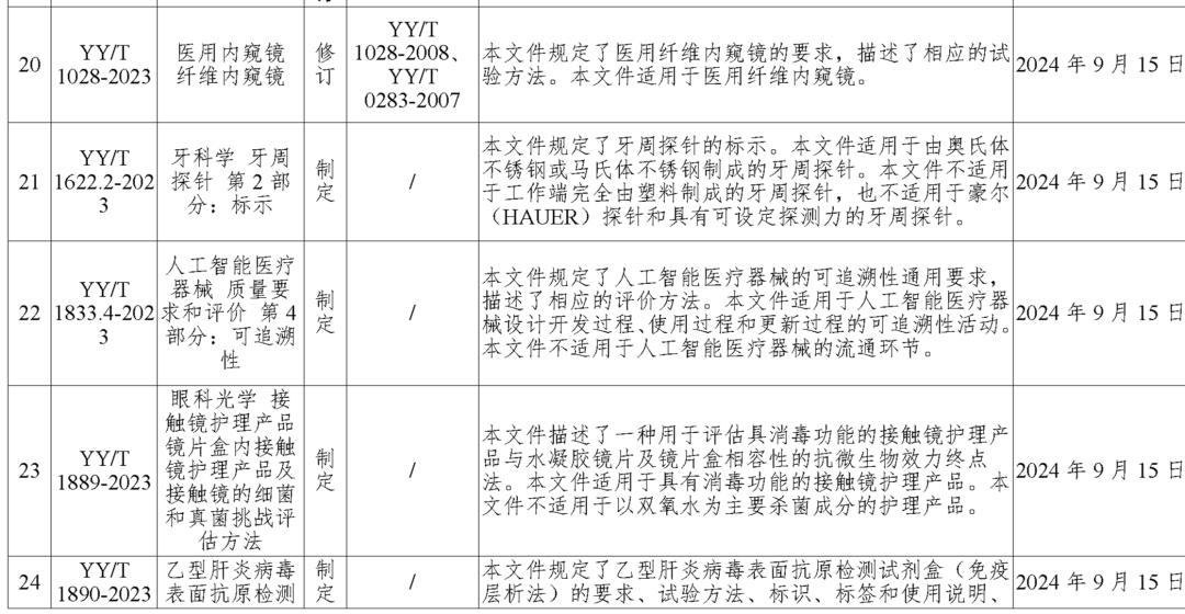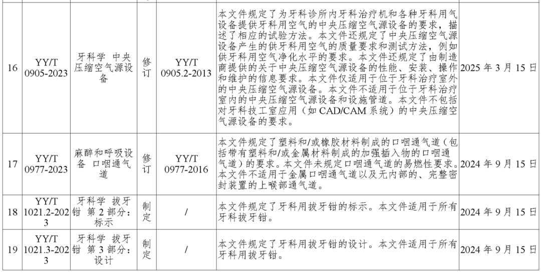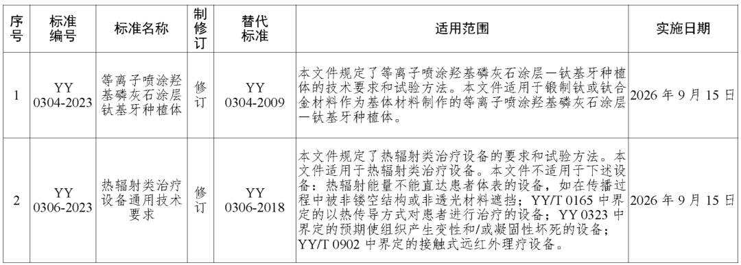 YY 0304-2023《等离子喷涂羟基磷灰石涂层钛基牙种植体》等45项医疗器械行业标准已经审定通过,现予以公布。标准编号、名称、适用范围和实施日期见附件。