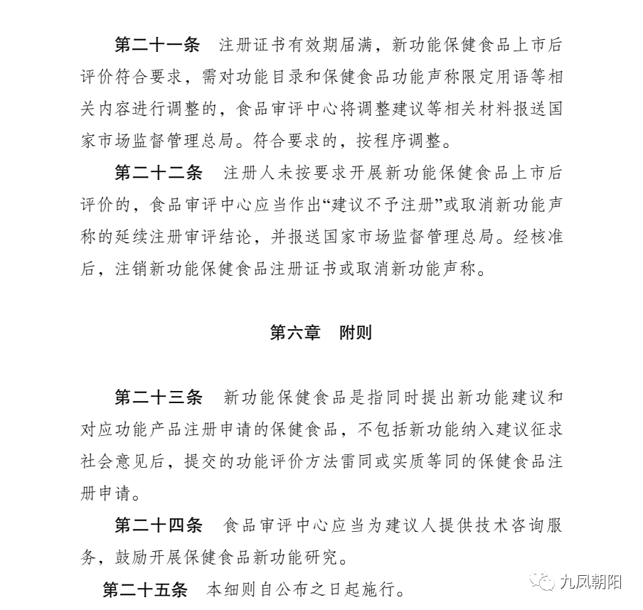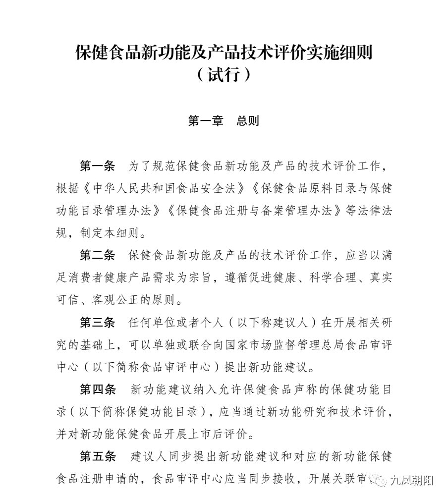 《实施细则》从“总则”“新功能研究”“材料接收”“技术评价”“上市后评价”“附则”等6个方面进行了详细论述,鼓励引导企业、高校、科研机构等社会力量开展功能创新和产品研发,进一步促进产业高质量发展。《实施细则》是从制度上改革我国以往保健食品功能声称评价管理模式的重要举措,以制度创新引领产业创新,以消费结构升级引领产业转型升级,用优质产品满足人民日益增长的健康需求,不断提高人民群众的满意度和获得感。