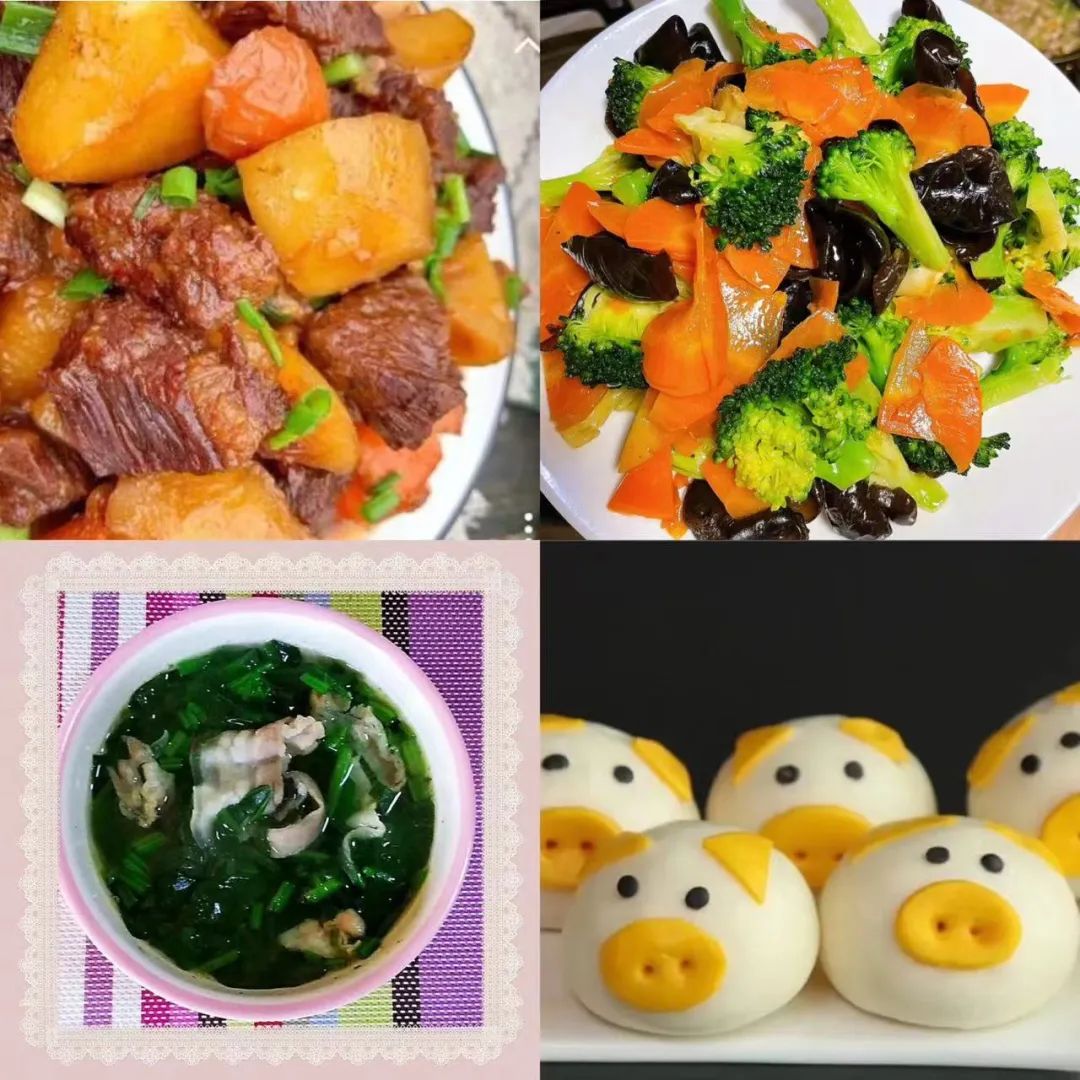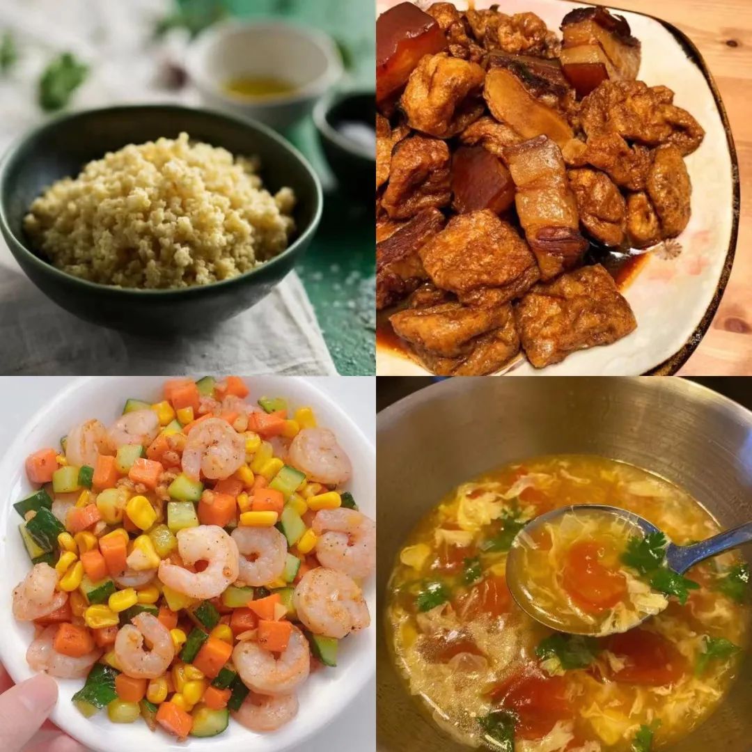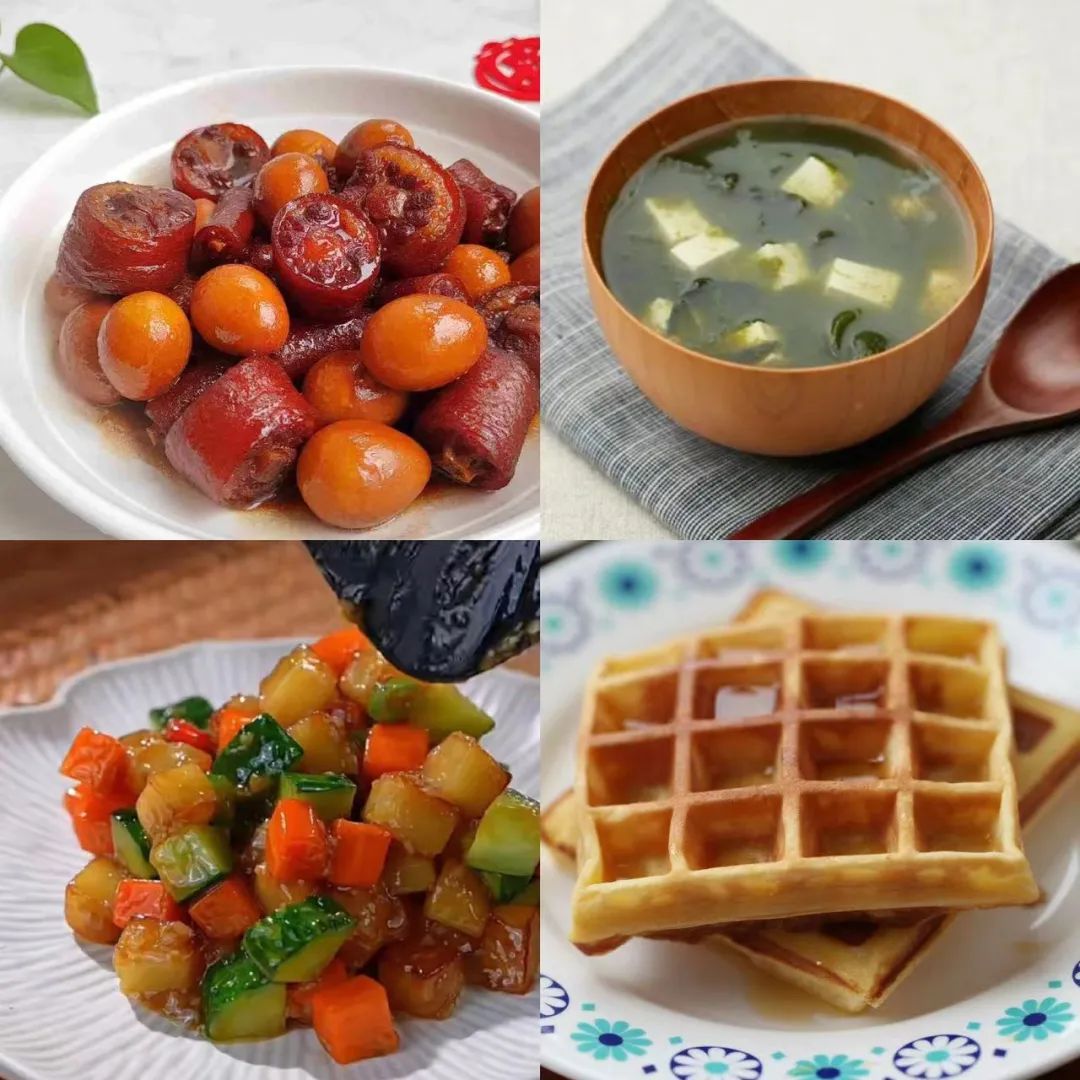 ②油豆腐烧肉(猪肉34g,油豆腐23g,白糖3g,料酒0.5g,酱油2g,油4g,小葱0.5g)