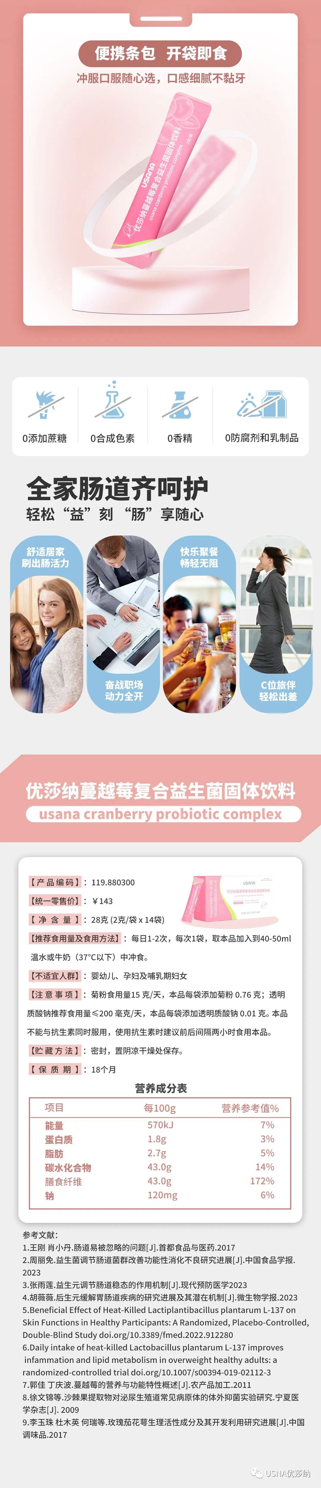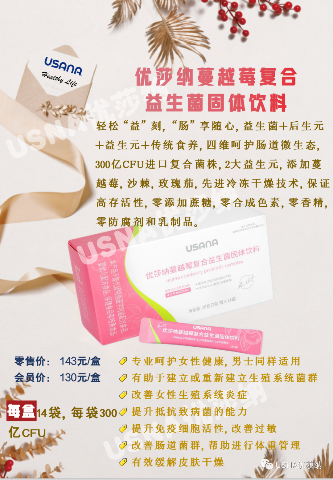 【产品名称】USANA蔓越莓复合益生菌固体饮料