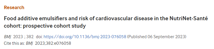 据统计,欧美的饮食结构中,成年人有30-60%的能量来自于深加工的食品,这些食品的制作过程中往往需要加入大量的食品添加剂。而食品添加剂中,最常用的就是乳化剂,因为它们可以增加食物的粘稠性,增加口感并利于长期保存。根据法国的数据,成人消费量最大的10种食品添加剂中有7种被归类为乳化剂,包括改造淀粉,卵磷脂,黄原胶,果胶,角叉菜胶,瓜尔胶,脂肪酸甘油单酯或二酯。目前有很多证据显示,深加工的食品的摄入过多与心血管死亡、心血管疾病、代谢疾病的发病率升高显著相关。那么,有一种可能就是深加工食品中广泛使用的食品添加剂(主要是乳化剂)是造成这些危害的罪魁祸首。近期,BMJ杂志发表了一项来自于法国营养与健康前瞻性数据库的最新研究,探讨了这一话题。