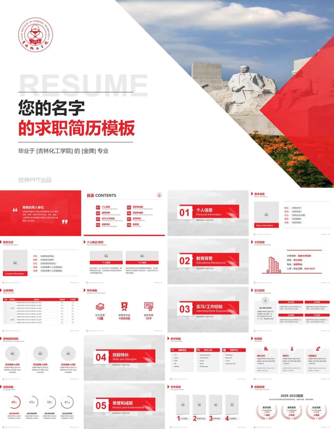 第2套:吉林化工学院求职简历PPT模板(40页)