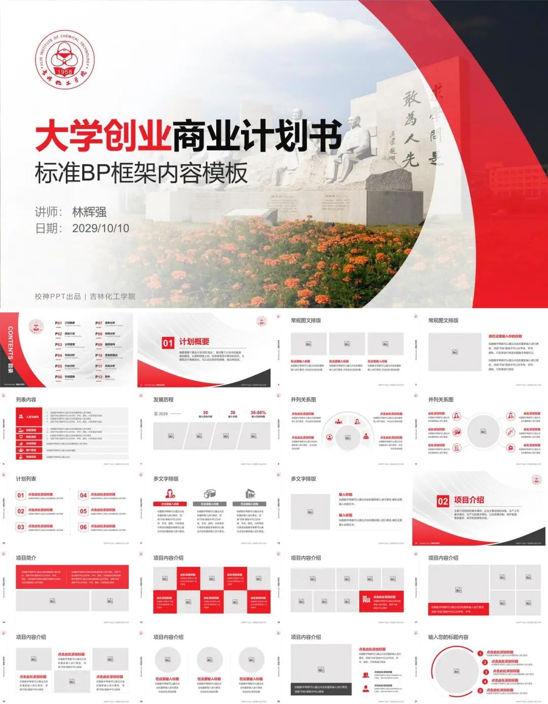 第3套:吉林化工学院大赛计划书/路演/网评PPT模板(146页)