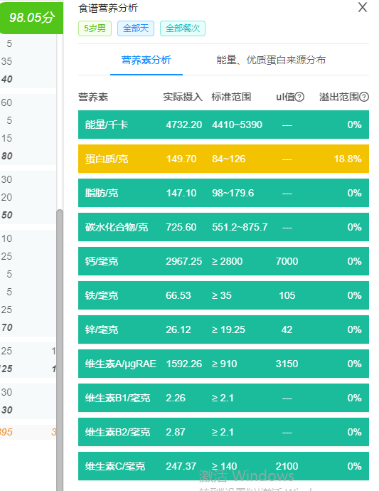 一周食谱营养分析