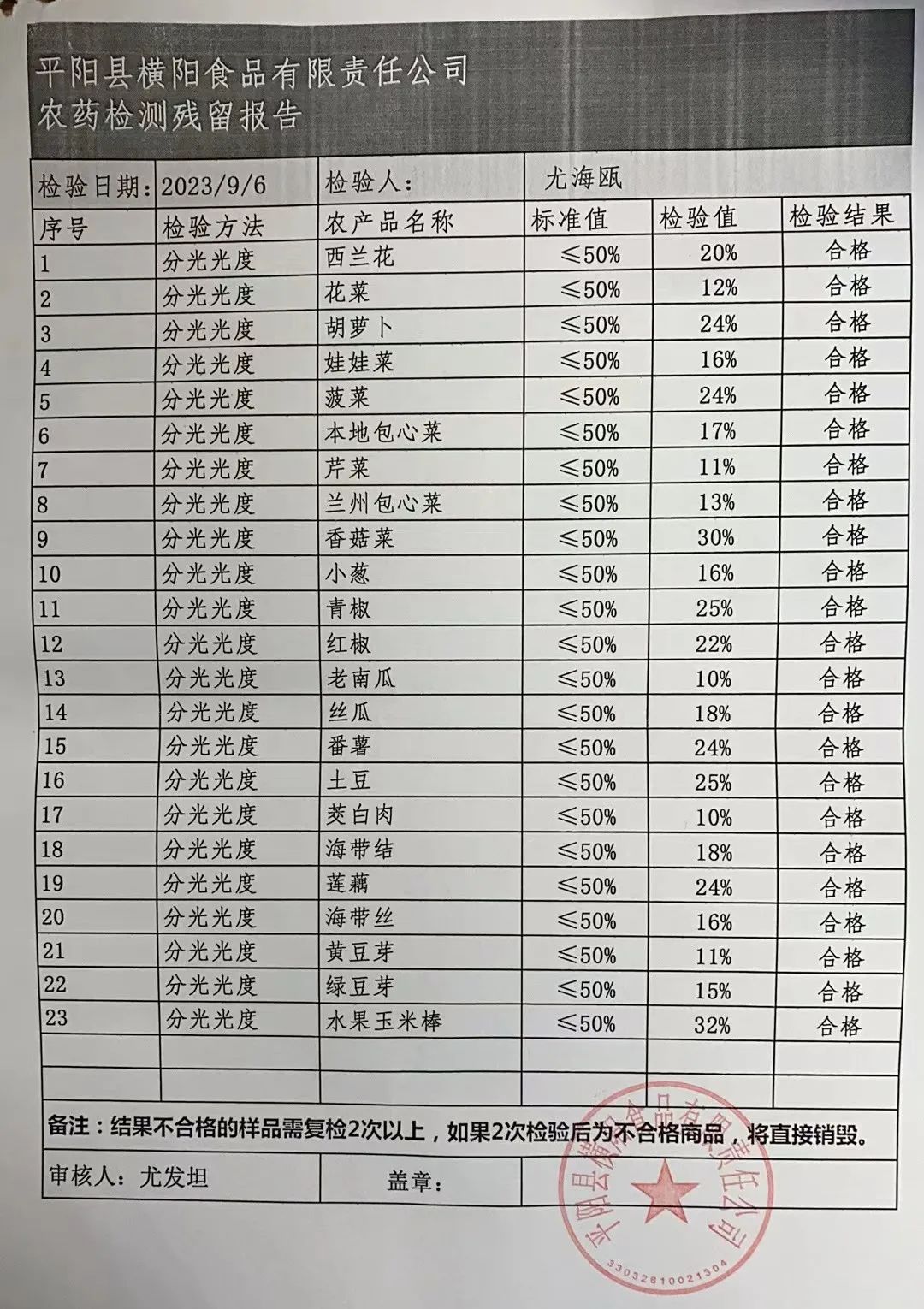 蔬菜质检报告