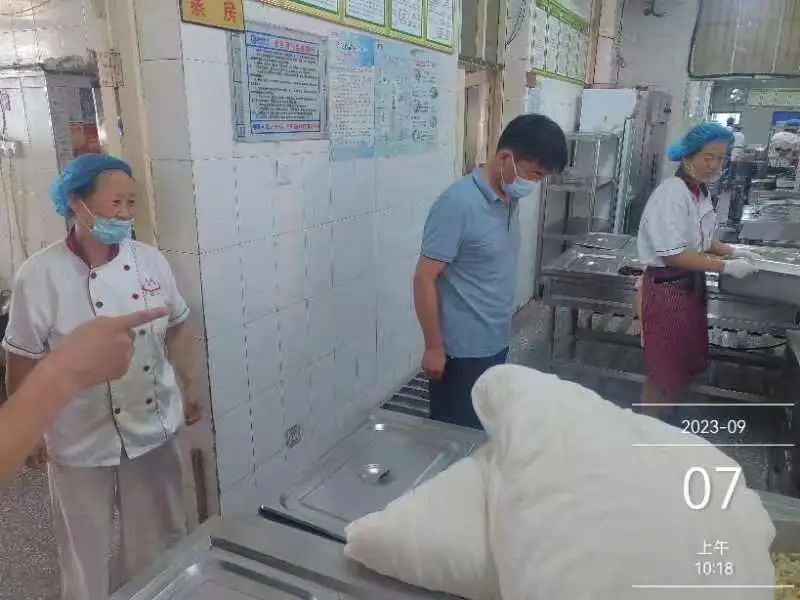 为了提高食堂管理水平,确保食品安全,让我校师生吃的放心、安心,开学伊始,刘杰校长带领后勤人员,检查督导学校食堂。