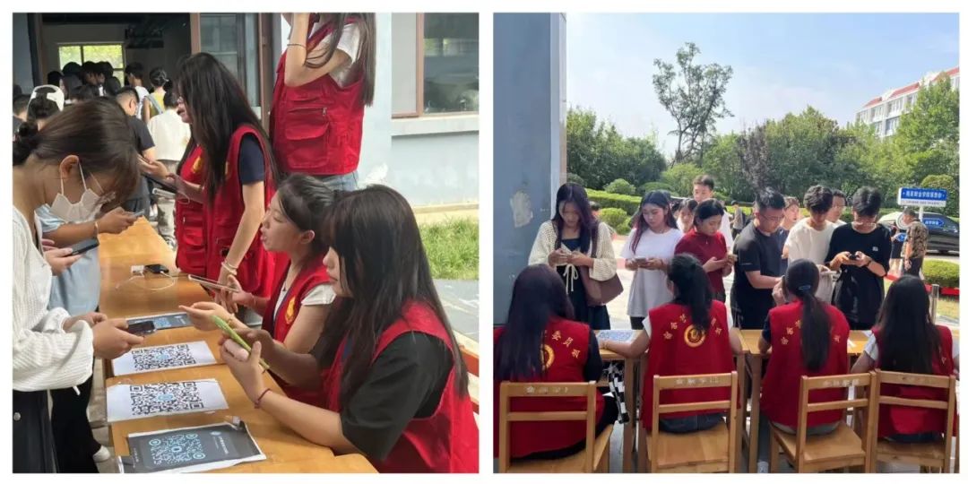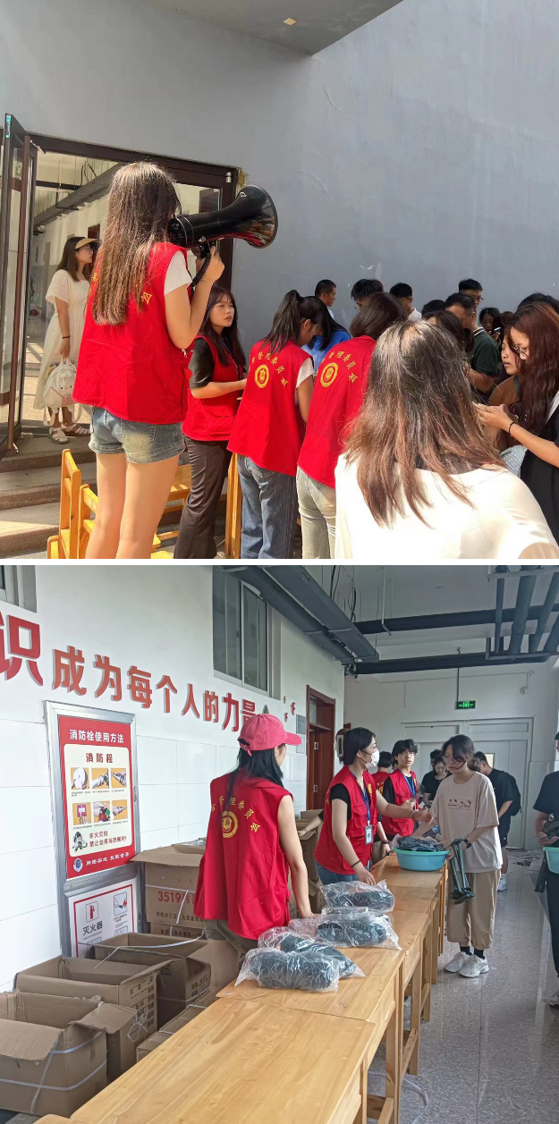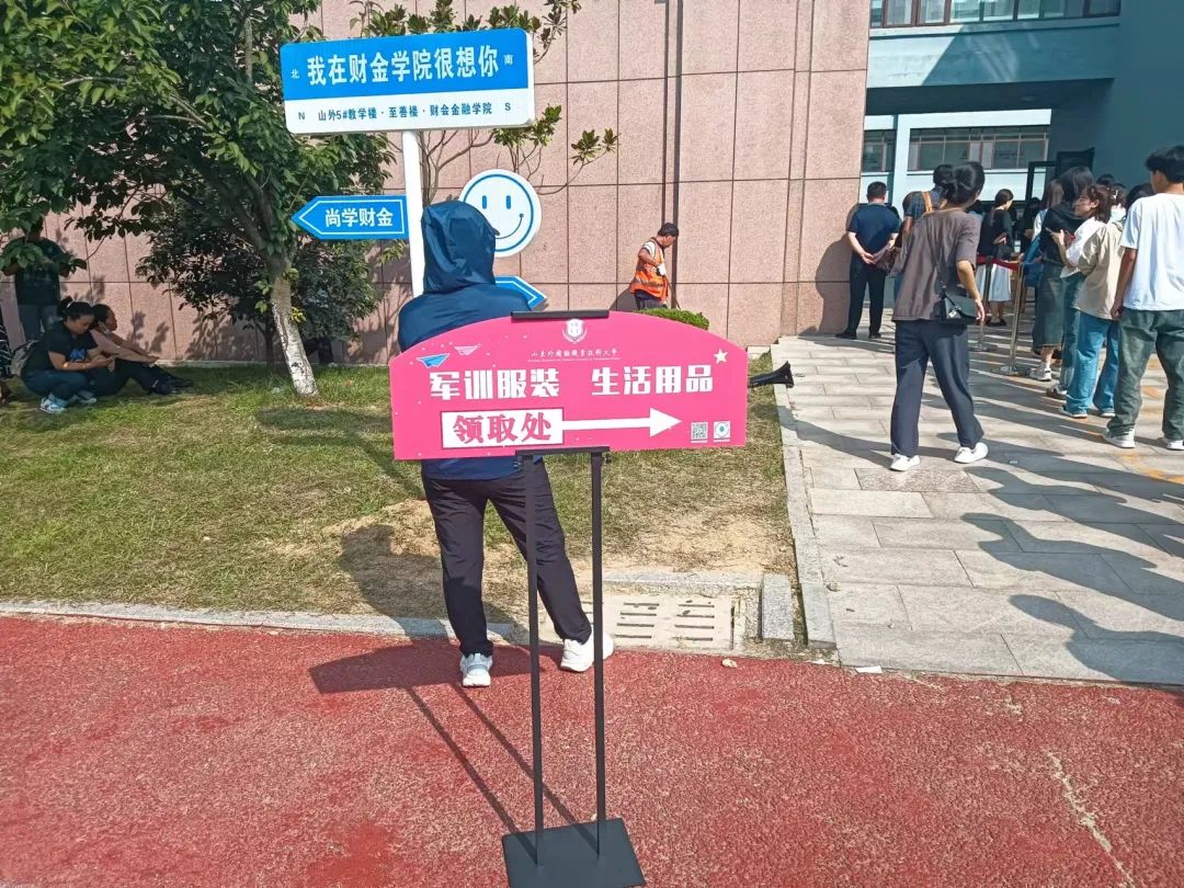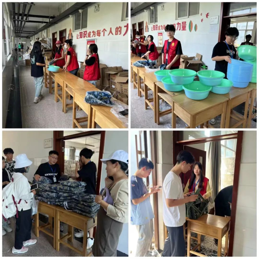 登记和军训用品发放人员协调配合、分工明确,热情周到,解答疑惑,以良好的精神风貌共同迎接新生。