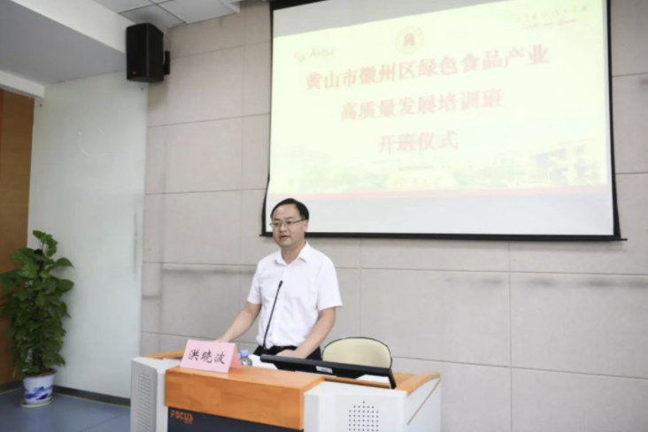 为进一步壮大黄山市徽州区绿色食品产业集群,提升绿色食品品牌价值,助推绿色食品产业高质量发展,助力乡村振兴。9月4日至9月8日,由徽州区人民政府主办,江南大学商学院EDP中心承办的“黄山市徽州区绿色食品产业高质量发展培训班”在商学院成功举办。徽州区绿色食品骨干企业负责人、徽州区人民政府副区长洪晓波、区直有关经济部门和各乡镇分管领导共40人参加了本次培训。江南大学商学院副院长王雷教授、商学院、食品学院、设计学院等专家教授出席。江南大学(铜陵)国家技术转移中心主任、设计学院教授吴祐昕受邀为此次培训班成员作主题培训。