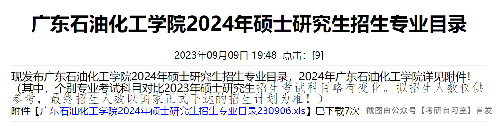2、广东石油化工学院研究生院:广东石油化工学院2024年硕士研究生招生专业目录
