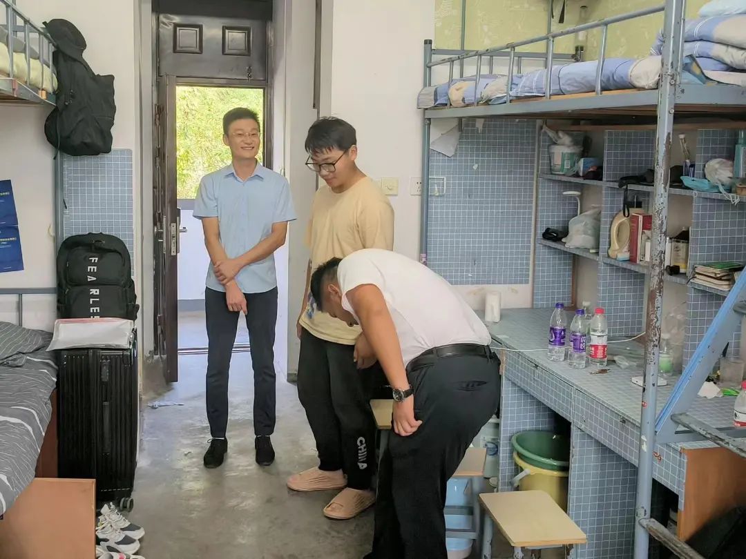 9月9日,我们化学化工学院领导和老师们在新生宿舍里慰问正在收拾行李的新生们。