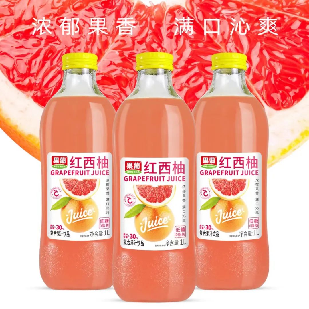 果葡果汁,用好果,出好汁!果汁含量30%,低糖、0脂肪;浓郁果香,满口沁爽,口感极佳,餐饮商超首选产品,高性价比!高颜值,高品质,高利润,高支持!