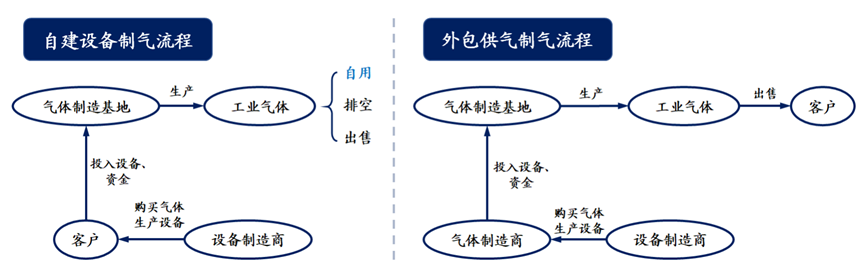 自建设备供气和外包供气流程区别
