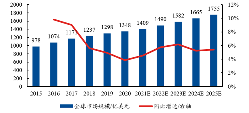 全球工业气体供需持续增长。由于工业气体在工业领域有广泛应用,全球下游行业的需求长期保持稳定增长态势。据弗若斯特沙利文,全球工业气体市场规模将由2020年的约1348亿美元扩大至2025年的约1755亿美元,5年CAGR 为5.4%。