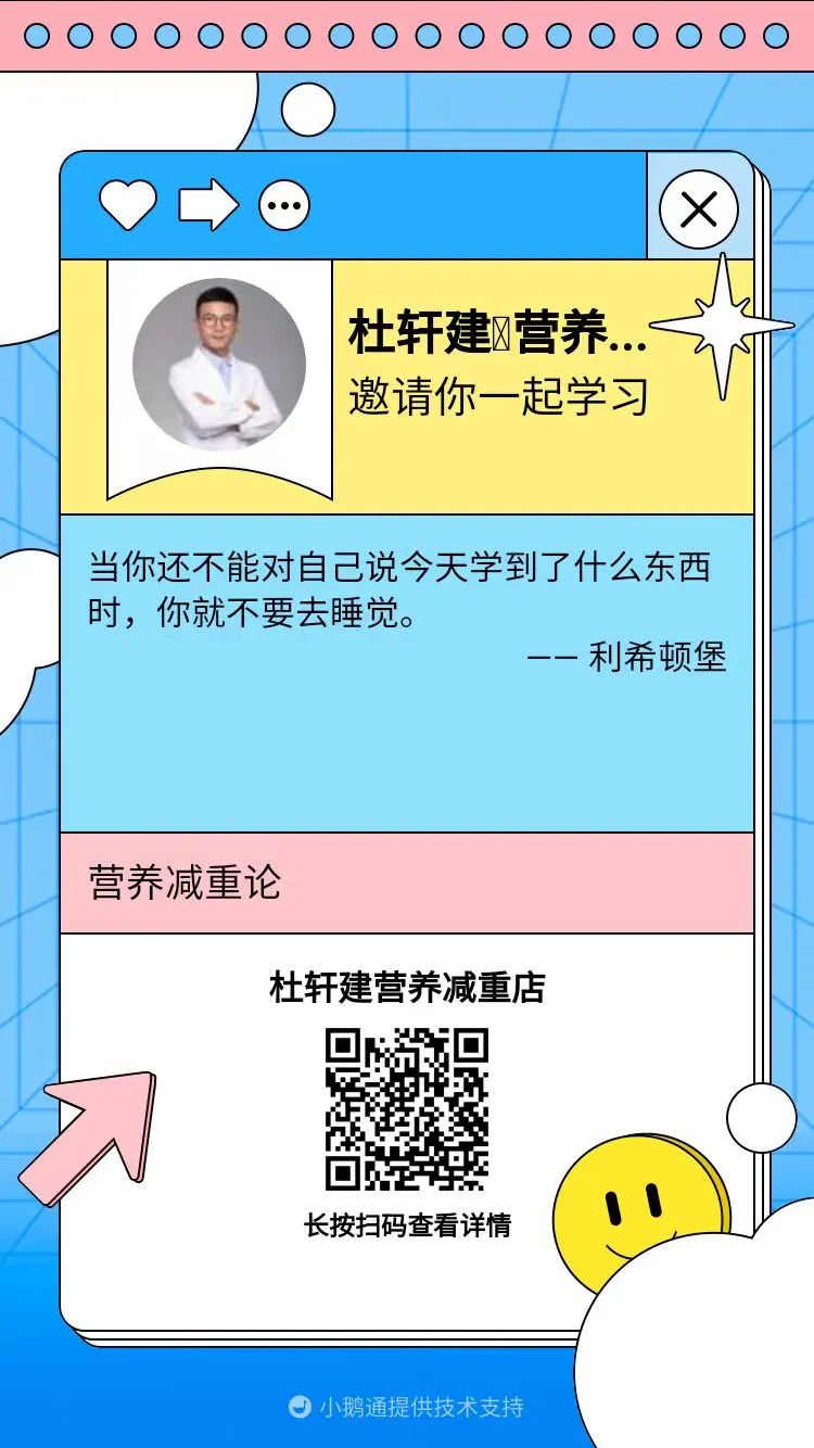 那该如何彻底戒掉加工零食、饮料?如何保持自律?如何减掉内脏脂肪?如何通过饮食对抗炎症?如何拿到真正适合自己的“营养减重食谱”?如何逆转胰岛素抵抗?杜师傅在我的新课《营养减重论》中有科学、详细的方法和食谱。