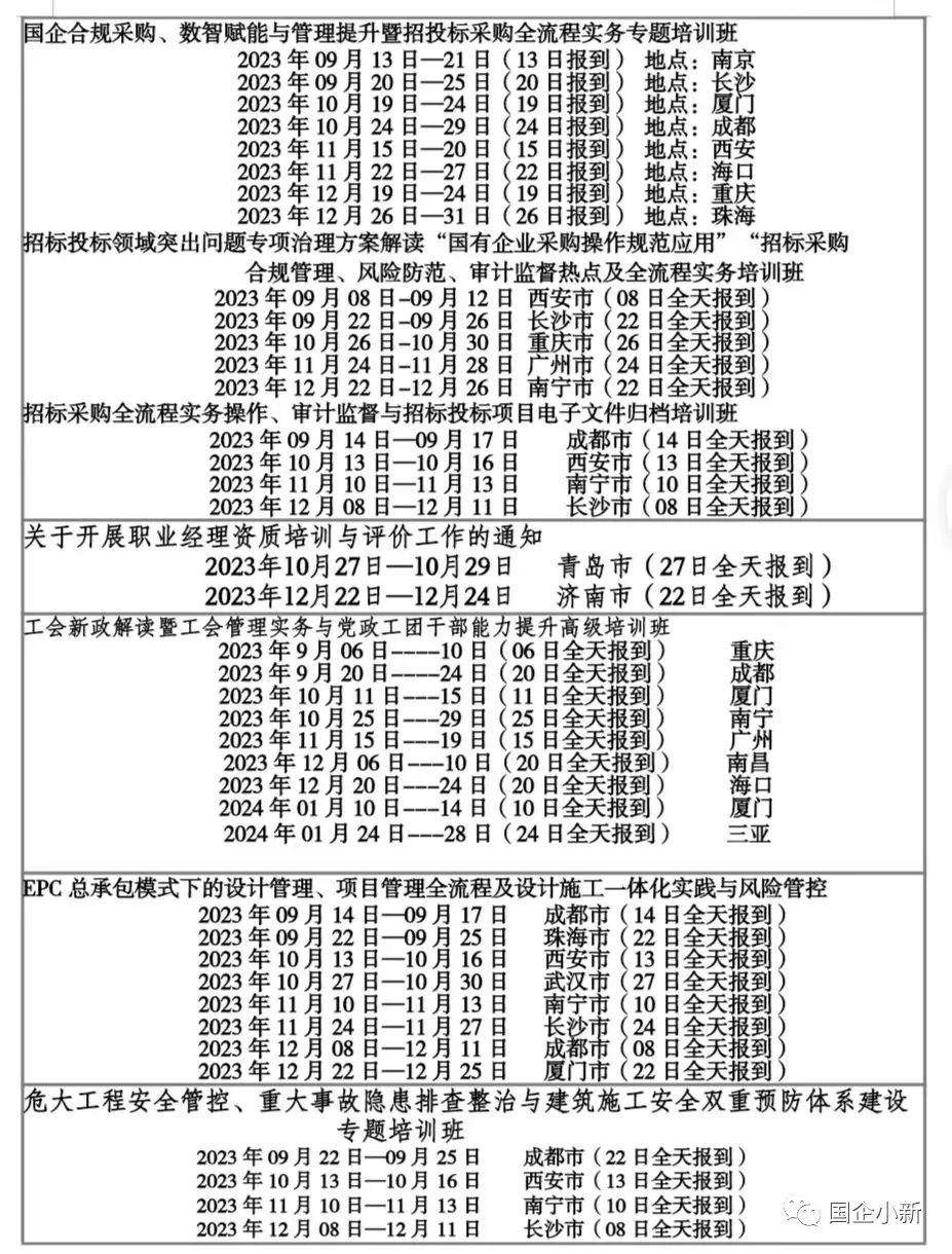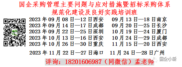 在新形势下,国有企业如何做好招标采购的风险防控,做好招标采购合规管理,如何规范招标采购全流程业务?为帮助国有企业采购人员理解2023版的《国有企业采购操作规范》主旨精神,掌握国有企业招标采购的各种采购方式和组织形式,帮助学员理解国家有关部委对招标投标领域专项治理的要求,从而营造更加公平公正、规范高效、阳光透明的招标投标市场环境,邀请规范起草组专家,理论联系实际授课,通过案例系统解读团体标准和国家发改委等部委的专项治理要求,帮助广大招标人梳理招标采购过程中的重点和难点问题,为各单位厘清招标采购的短板弱项、梳理出招标采购过程中的风险点,从而确保广大招标人在开展招标采购工作时进行依法合规采购。请各单位积极组织相关人员参加。