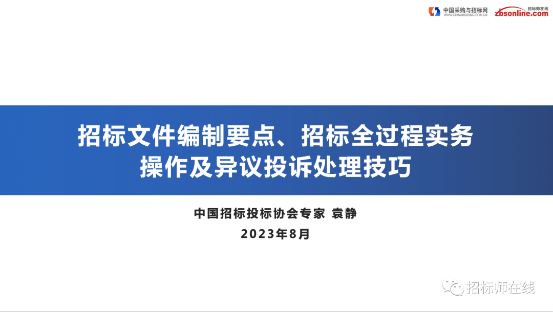 9月14-15日北京倒计时|招标投标法律政策解读、招标文件编制要点、招标全过程实务操作及异议投诉处理技巧