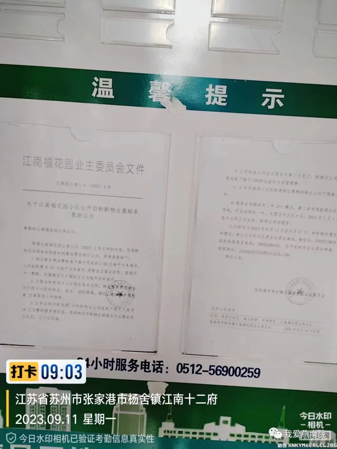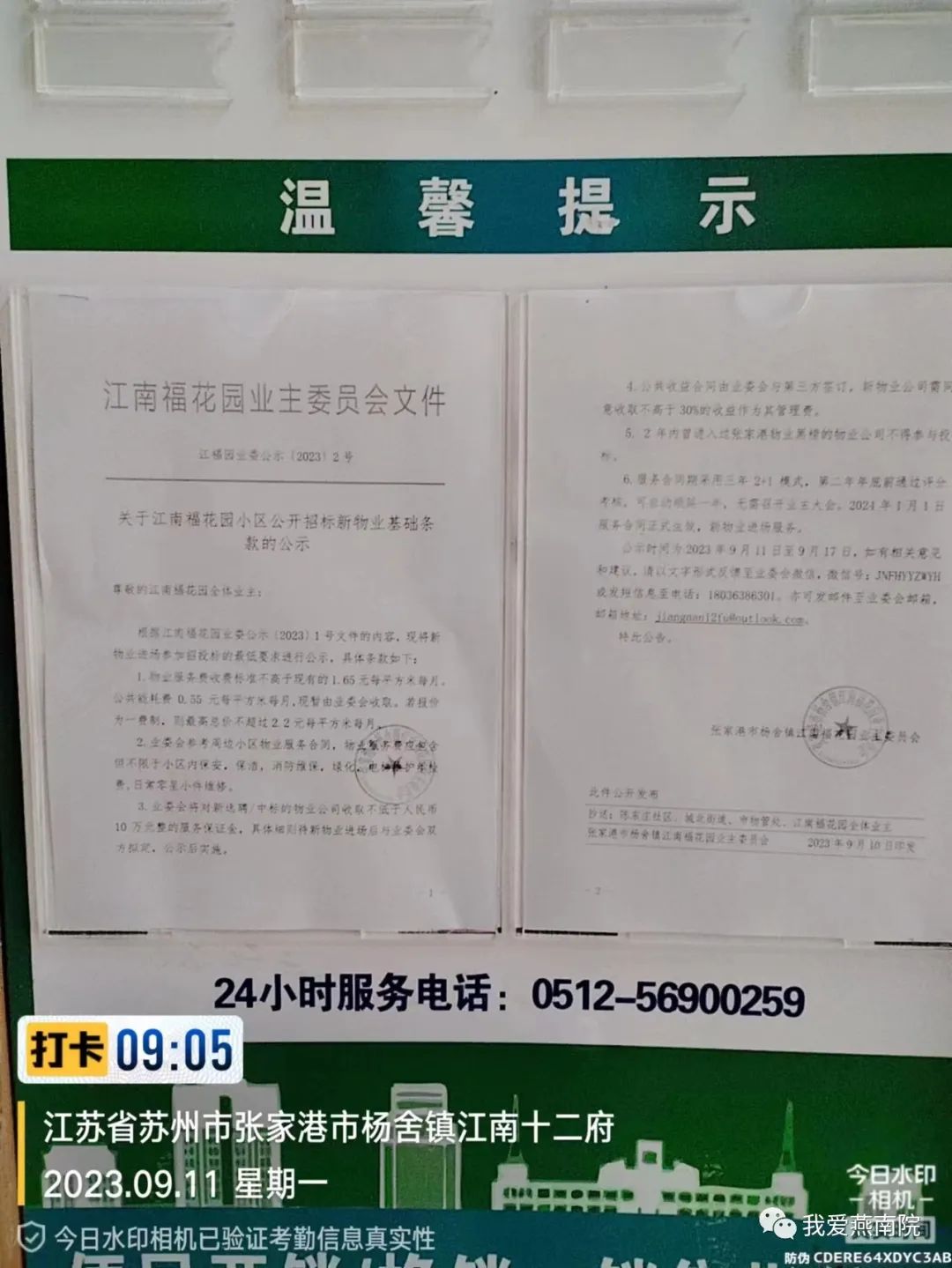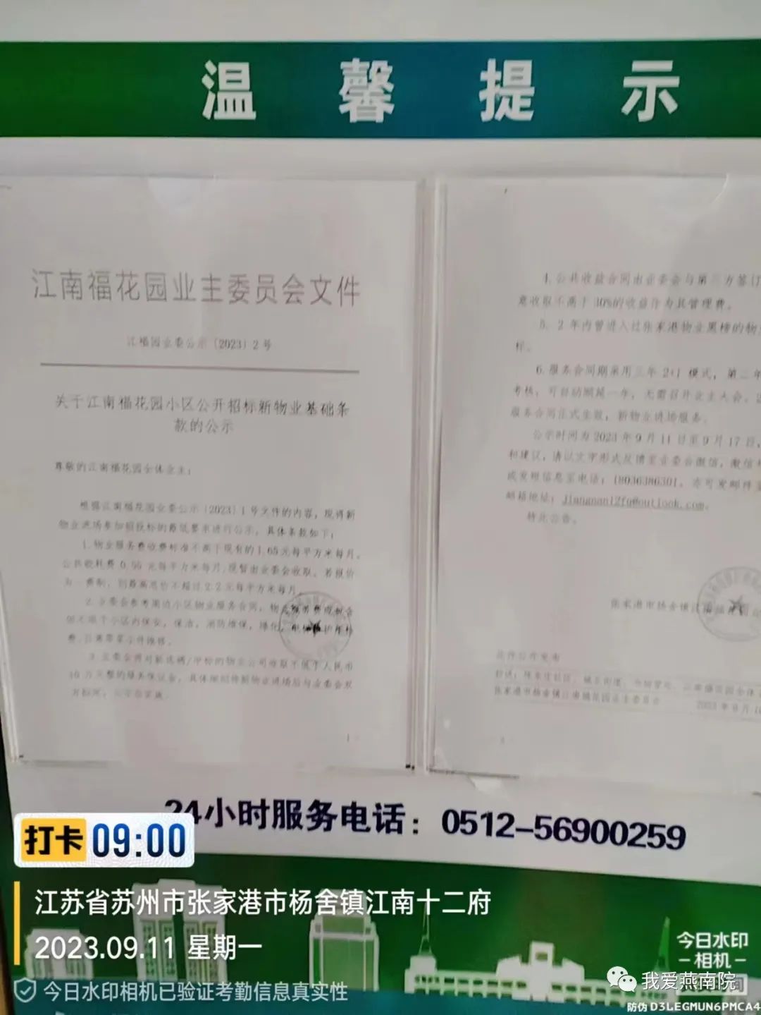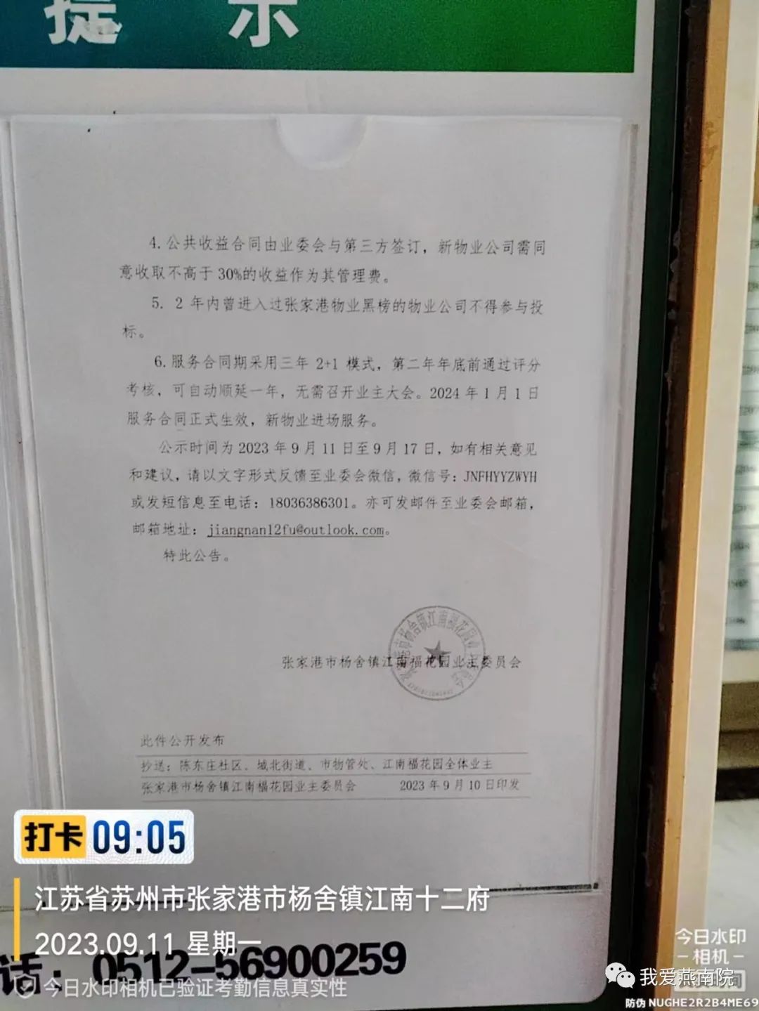 相关公示内容已张贴在小区各楼幢公告栏,公示起止日期为2023年9月11日至9月17日: