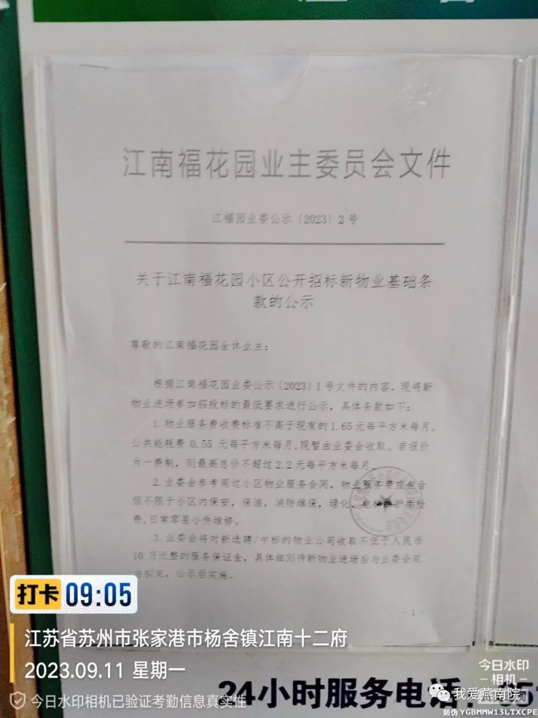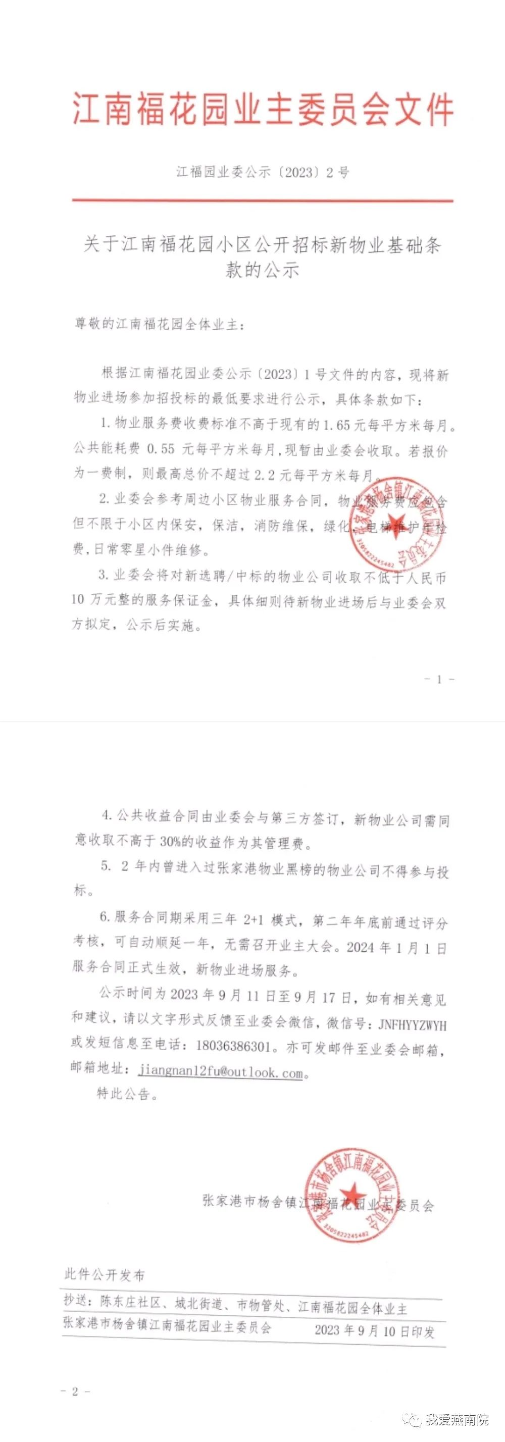 关于江南福花园小区公开招标新物业基础条款的公示