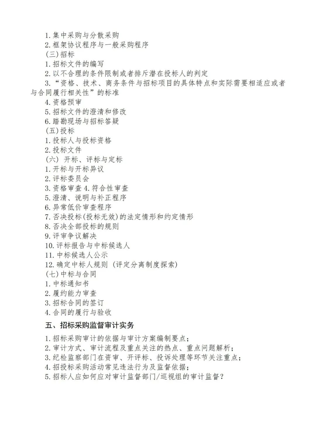 “招标投标领域突出问题专项治理方案解读”“国有企业采购操作规范应用”“采购合规管理、风险防范、审计监督热点及全流程实务”