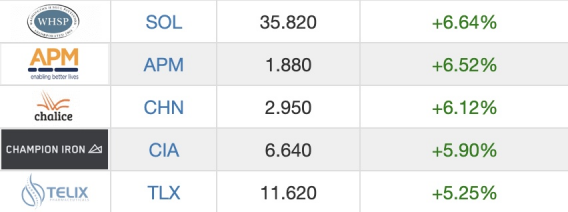 ASX200涨幅排在前5的公司: