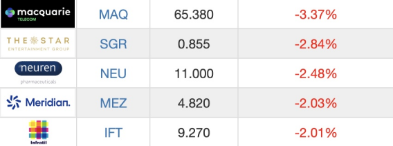 ASX200跌幅排在前5的公司: