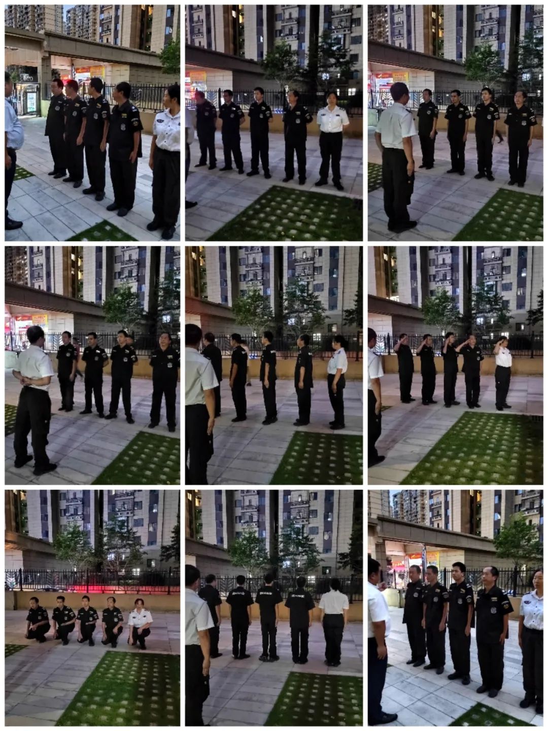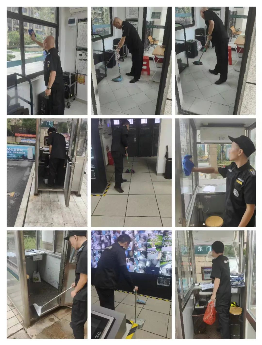 为了展示东郡物业蓬勃朝气,安防部每日进行大客服及交接班培训,每周固定周三进行场景模拟,周五进行大扫除,严格按照门岗标准化执行。