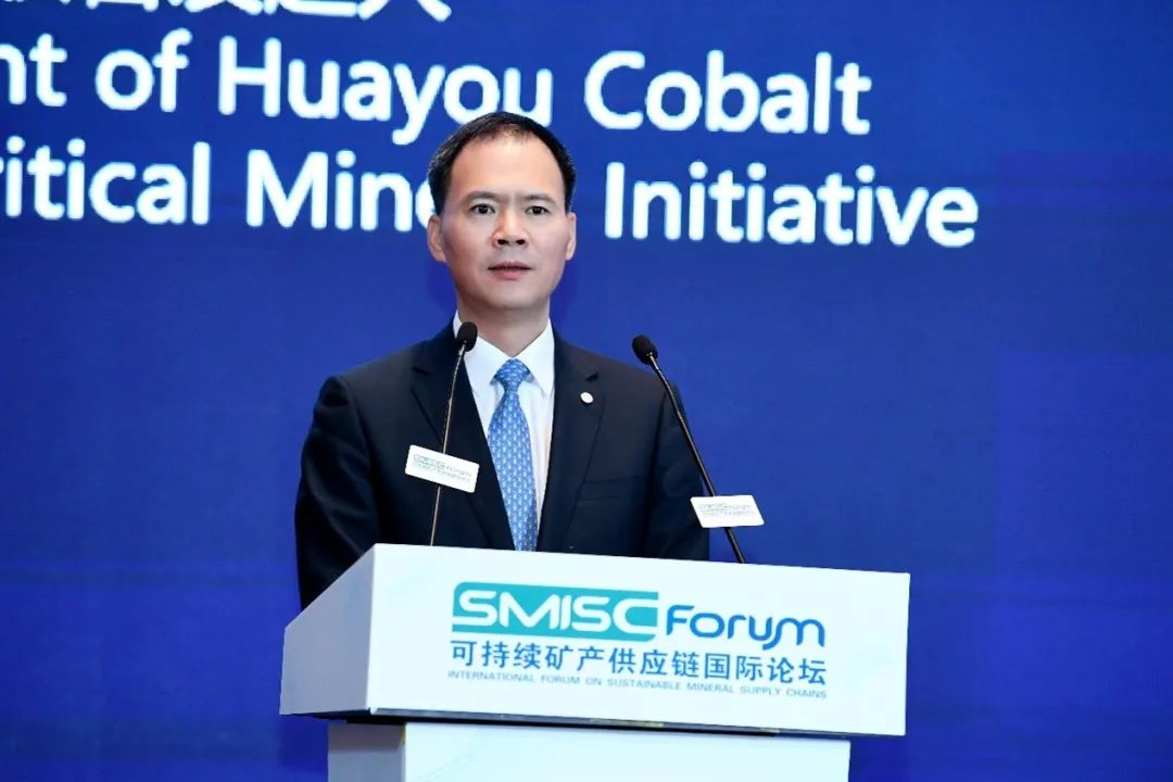 浙江华友钴业股份有限公司总裁、关键矿产责任倡议联合发起人陈红良宣读关键矿产供应链高质量发展联合行动倡议