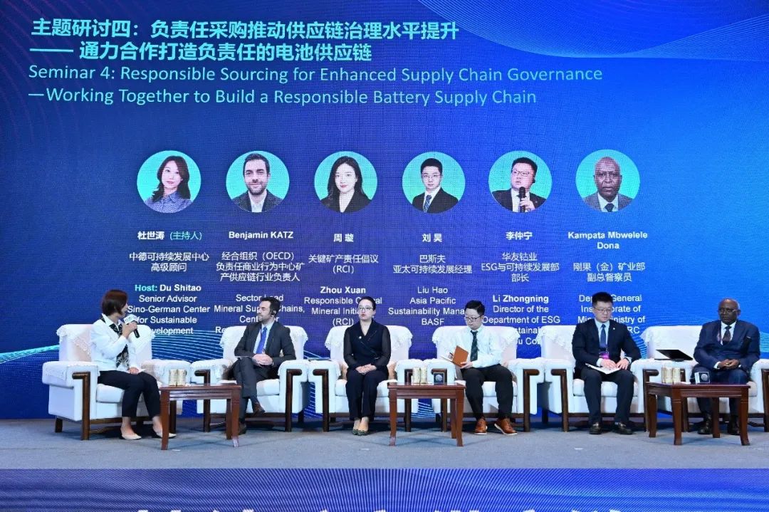 主题研讨四由关键矿产责任倡议(RCI)、中德可持续发展中心(CSD)和德国国际合作机构(GIZ)联合主办,围绕2023年6月欧盟通过的《新电池法案》,探讨如何有效应对新规带来的影响,推动供应链上下游开展有效合作,打造负责任的电池供应链。